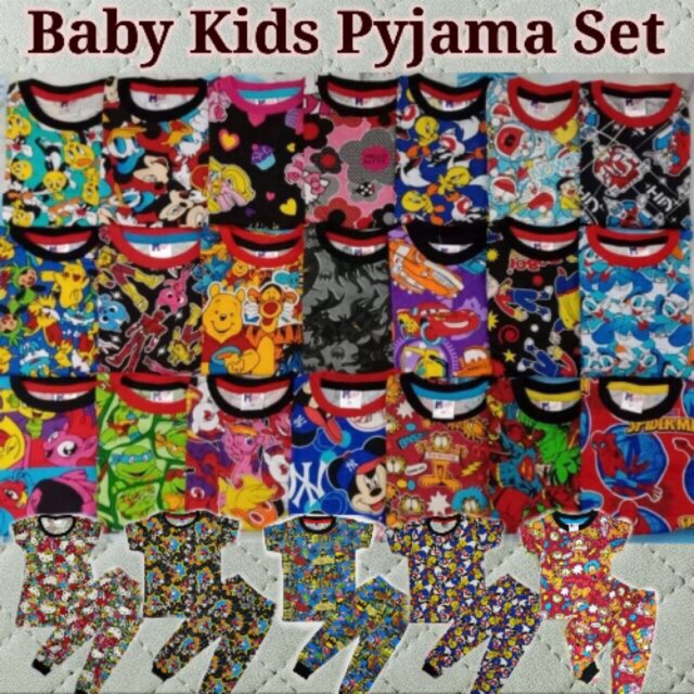 Borong 12 Pcs Baju Budak Kids Pyjamas Baju Kanak Kanak Random Design Shopee Malaysia